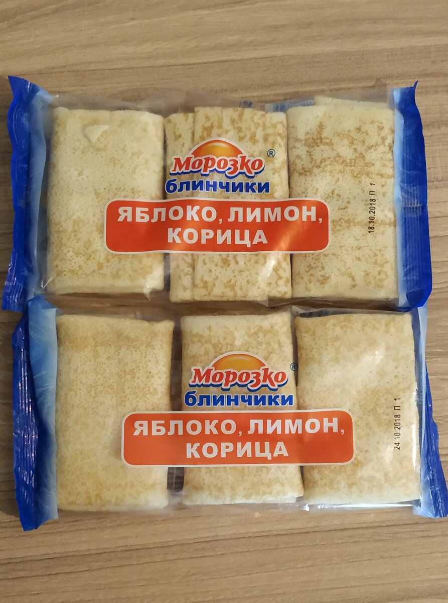 Сегодня на обзоре очередные полуфабрикаты. На этот раз замороженные блинчики со вкусом яблока, лимона и корицы. И снова - по скидке. Посмотрим же, что у них в составе и каковы они на вкус. Состав В составе у них действительно есть яблоки, помимо этого еще сахар, вода, загустители, лимон, корица, консервант, мука, пшеница, маргарин (растительные жиры, масла, пара Е-шек, консервант, ароматизатор), сахар, сухое молоко... в общем состав не очень хороший. Оценка: 1/5. Вкус Так как сковорода была грязная, и мыть ее было лень (ставьте лайк, если у вас тоже такое бывало), решил приготовить блинчики более простым способом, но тоже рекомендованным производителем - в микроволновке. В итоге прогрел их как следует, но не перегрел, что редко удается. В общем все как надо. В целом блинчики оказались неплохими, как мне показалось изначально, из-за того, что я был голоден, но потом я все же понял, что начинки в них очень мало, теста много и это большой минус. Единственное, я думаю, если их прожарить на