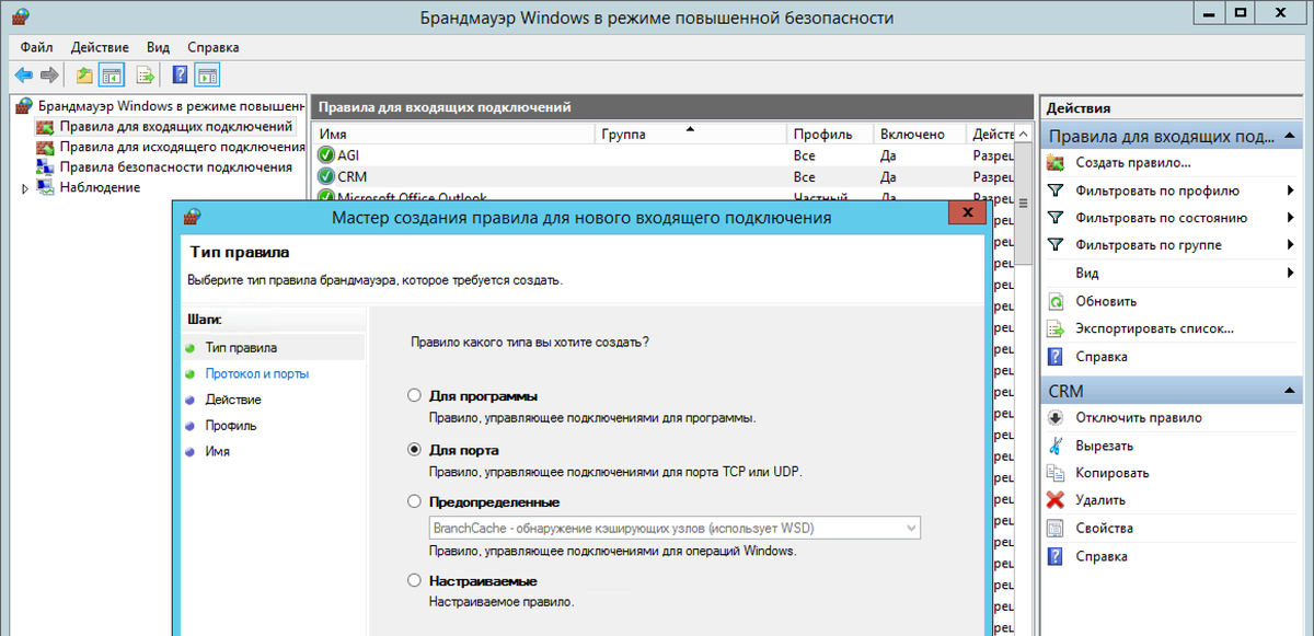 Сегодня расскажу как правильно открывать порты при помощи брандмауэра Windows. Такая задача может возникнуть если вы установили какой-то, возможно не стандартный, сервис на своем компьютере и требуется предоставить к нему доступ из сети. В моем случае это была CRM на Windows Server 2012 R2, которая слушала tcp порты 3034 и 3050. Чаще требуется открыть порты к базам данных SQL Server (порты 1433 и 1434) - всё делается аналогично. Итак, в меню Пуск переходим в Панель управления -> Система и безопасностьи -> Брандмауэр Windows (если на панели управления не включено представление по категориям, сразу выбираем Брандмауэр Windows). Переходим в Дополнительные настройки. Для примера откроем tcp порт 1433: Если считаете статью полезной, не забывайте ставить лайки и подписываться на канал. ссылка на статью в блоге https://mdex-nn.ru/page/otkrytie-portov-v-windows.html