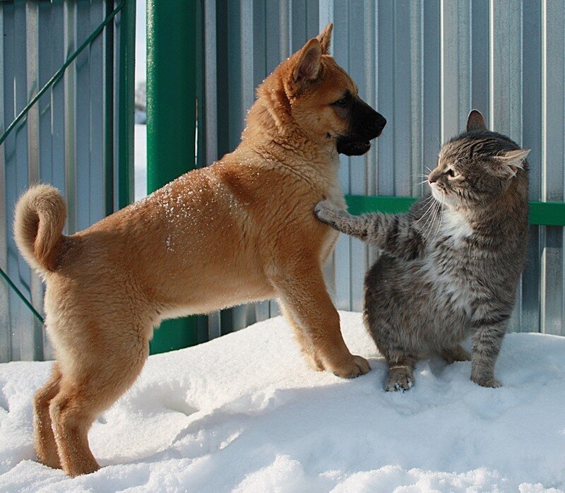Обычно оба этих животных, оказавшихся в одном доме, привыкают друг к другу постепенно. И даже если не подружатся, то могут стать, хотя бы союзниками.