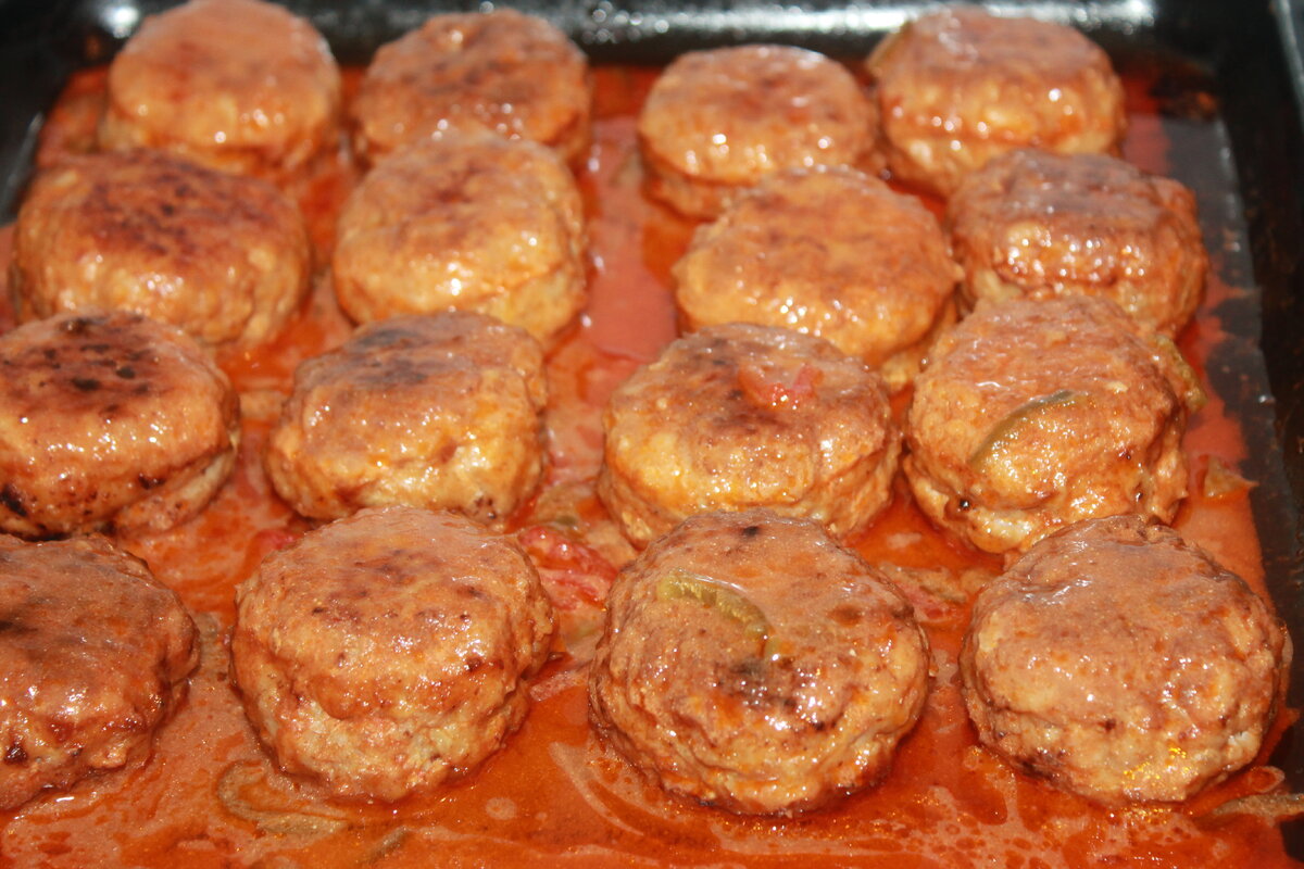 Тефтели - разновидность котлет. Вкусное мясное блюдо! В классическом варианте они готовятся с рисом. У нас ещё добавки. Тефтели в нашем случае получаются чуть вкуснее и сочнее. Супруг всегда говорит: фантастический вкус! Рекомендуем попробовать! Для приготовления нам нужны такие продукты: Ингредиенты Приготовление Морковь, лук очищаем. Лук режем кубиками, мелко. Обжариваем 2 минуты на сковороде с 40 мл. подсолнечного масла, помешивая. Огонь сильный. Морковь трём на крупной тёрке. Добавляем к луку. Обжариваем 3-5 минут на сильном огне, помешивая. До золотисто-оранжевого цвета моркови. Даём не много остыть (можно, чтоб осталась тёплой). Рис промываем. Высыпаем в кастрюлю. Заливаем водой. Доводим до кипения, выключаем. Даём 5 минут настояться (когда тороплюсь, сразу промываю, в блюде рис получается готовым). Промываем, воду сцеживаем. Делаем фарш Мясо перекручиваем на мясорубке. Добавляем к мясу: морковь с луком, чеснок, рис, яйцо, соль, мускатный орех (чёрный перец), соду на кончике