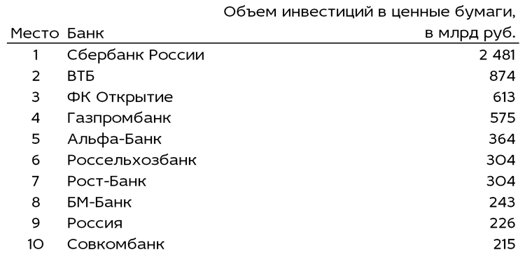 Суммарный объем инвестиций 200 крупнейших банков России в ценные бумаги бьет рекорды третий месяц подряд. За июль 2017 г. портфель банков увеличился на 2,3% и превысил 9,98 трлн руб. – рекордный уровень для 1 августа за все годы наблюдений Топ-10 банков по объему инвестиций в ценные бумаги на 1 августа 2017 г. Источник: СМИ www.index3000.ru | Рынки