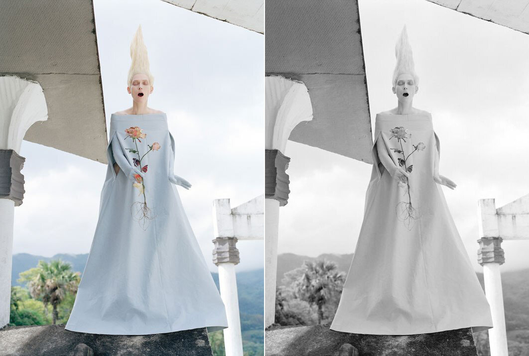 Стоит синий фонтан. А в фонтане стоит гусь.