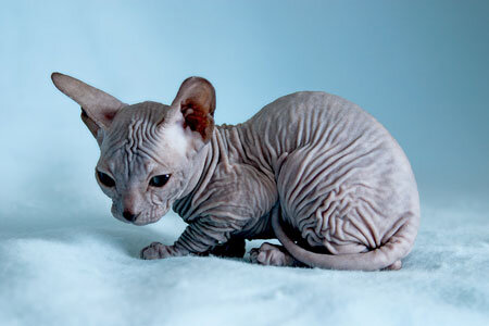 История появления «голых» кошек уходит в глубокую древность. Существуют рисунки цивилизации ацтеков на которых изображены кошки без шерсти. В первые на выставках такие кошки появились в 1924 году. В 1960-х годах в Канаде появились на свет «голые» котята в результате спонтанной мутации и с 1966 года начали вплотную заниматься выведением породы «голых» кошек». Порода была выведена, а названа канадский сфинкс, а в 1987 году в Ростове-на-Дону также в результате спонтанной мутации родилась «голая» кошка, правда, она было не совсем голой, у нее была остаточная шерсть на лапах, голове, хвосте. Именно с нее началась работа на Донским сфинксом. В формировании породы использовались европейская короткошерстная и сибирская кошки, было принято решение «приливать» кровь кошек только аборигенного происхождения, такая задача стоит и сегодня перед заводчиками, которые ищут пути улучшения породы. Бытует мнение, что донские сфинксы – «голые» (лысые) кошки это не совсем так. В настоя