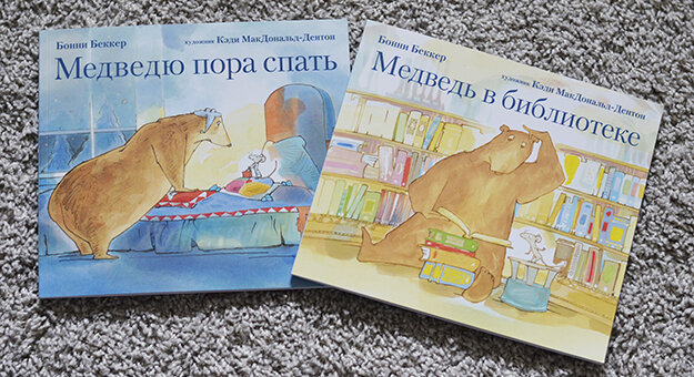 Я очень люблю детские книги с рисунками советских художников, но в плане обсуждения чувств героев они не совсем подходят. А вот книги Бонни Беккер «Медведь в библиотеке» и «Медведю пора спать» с иллюстрациями Кэди МакДональд-Дентон совсем другое дело.