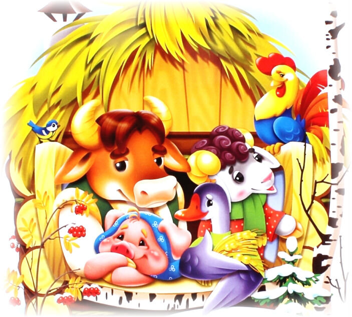 Герои сказки Зимовье зверей баран, свинья, гусь и петух в начале сказки оказались самонадеянными лентяями, и повели себя очень глупо. Но потом поняли что ошиблись, признали свою вину, и попросились в дом к б