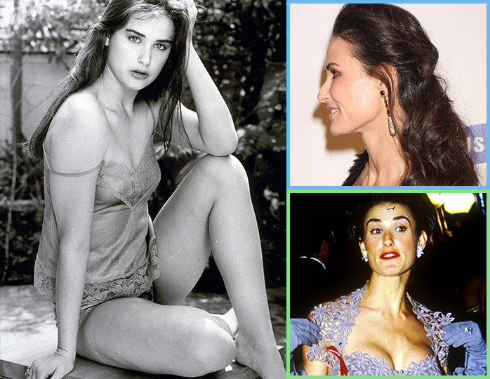Актриса успешно борется со стрессом и морщинами. В этом году у Деми Мур юбилей. «Непристойное предложение» в жизни Деми Мур случилось четверть века назад. Фигура актрисы за эти годы практически не изменилась — она такая же стройная, как в «Стриптизе». Разве что однажды Деми Мур увеличила грудь, но быстро избавилась от имплантов. Лицо звезды не раз бывало в руках пластических хирургов, актриса раз в неделю посещает косметолога для массажа лица. Результат их работы мы оценили с врачом-косметологом Екатериной Пограничной. Кстати, недавно Деми Мур призналась, что из-за стресса потеряла… два передних зуба. Но актриса быстро исправила ситуацию, Деми Мур все время надо быть в форме. После расставания с Эштоном Кутчером она встречалась с 57-летним принцем Эндрю (сыном королевы Елизаветы II), а сейчас вновь находится в поиске обеспеченного мужчины старше себя. Е. П.: — Деми Мур — шикарная женщина. К своему нынешнему идеальному образу она шла долго, но последовательно. Звезда перенесла нескол