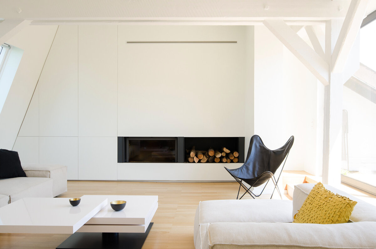 Проект The Attic — двухуровневые апартаменты площадью 240 квадратных метров в центре Страсбурга, Франция. Квартира получилась в результате реконструкции комнат для прислуги и расположенного над ними чердака в доме 1901 года постройки. Осуществившие проект f+f architectes использовали ограниченный набор средств: деревянные полы, чёрный МДФ встроенной мебели, крупные листы керамики в ванных комнатах и кухне. Планировка резиденции проста: все комнаты (спальни, ванные, кабинет и гостиная) расположены на первом уровне квартиры, в то время как верхний этаж занимает открытое пространство лофтового типа с кухней, гостиной и столовой. Двухсветная прихожая с большим потолочным окном расположена в самом центре квартиры; по одну сторону от неё находятся спальни родителей и детей, по другую — гостевая спальня и кабинет. За стенами чёрного бокса скрываются ванная комната и места для хранения. Пожелтевший от времени старый пол был сохранён и обновлён. Сосновые доски обработали щёлочью по скандинавск