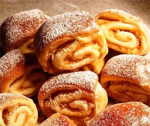 Яблочные булочки готовятся на дрожжевом тесте. Сама булочка будет с яблочной начинкой и легкими нотками лимона. В летний день эти булочки поднимут настроение и порадуют родных и гостей. Булочки выпекаются в духовке при 170 градусах. Ингредиенты Для теста: 500 г – пшеничной муки 250 мл – молока 2 шт. – куриные яйца 60 г – сливочного масла 50 г –сахарного песка 10 г – сахар ванильный 20 г – свежие дрожжи 1 ст.л. – подсолнечного масла ½ ч.л. – соли Начинка: 1 кг – яблок 4 ст.л. – сахарного песка 1ч.л. – ванильного сахара 40 г – сливочное масла 2 ст.л. – лимонного сока 2 ст.л. –манной крупы 1 ч.л. – корицы Приготовление 1. На плите в кастрюле подогреваем молоко и растопляем в нем сливочное масло. 2. В другую посуду наливаем пол стакана молока и добавляем 1 ложку сахарного песка, перемешиваем и добавляем 20 г дрожжей. 3. Смешиваем муку с солью и остатками сахара. В муке делаем углубление и добавляем туда молоко, смешанное с дрожжами, и оставляем на 20 минут, пока дрожжи «оживут». 4. Взби