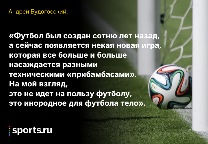 «Футбол был создан сотню лет назад, а сейчас появляется некая новая игра, которая все больше и больше насаждается разными техническими «прибамбасами». На мой взгляд это не идет на пользу футболу, это инородное для футбола тело.