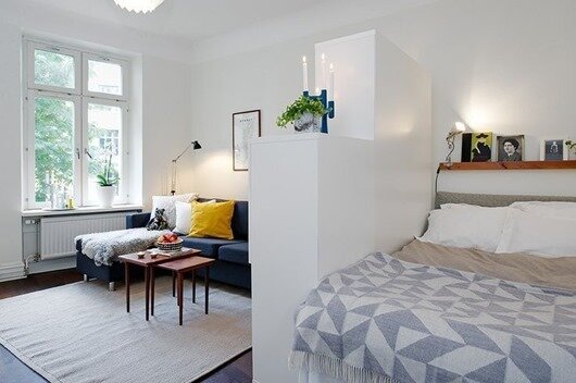 В любом случае, если вы затеяли ремонт, то ни о каких экспромтах и речи идти не может. Данный процесс требует тщательной подготовки и планировки. В противном случае, конечный результат может не только огорчить с эстетической стороны, но и причинять дискомфорт со стороны практической. Особенно этот вопрос критичен, если речь идет об оформлении маленькой квартиры. Первое, и основное – если есть возможность, то избавьтесь от лишних углов. Плавно переходящие друг в друга помещения сделают вашу квартиру визуально более просторной. Кроме того, такой дизайнерский ход может значительно повысить уровень практичности вашей квартиры. Если от углов избавиться невозможно, то сделайте так, чтобы они работали на вас. Не оставляйте пустовать даже самые затейливые уголки вашего жилья. Возможно, там найдет свое место вешалка или торшер, или даже ваш рабочий стол, изготовленный по индивидуальному эскизу? Тем, кто оформляет интерьер скромной однокомнатной квартиры, специалисты рекомендуют избегать кардина