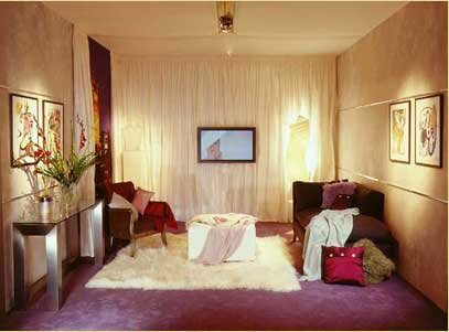 Пол и потолок могут быть использованы как средства зонирования пространства. Зоны можно выделять разными уровнями пола и потолка, кроме того это даст возможность создать разноуровневое освещение, что также будет способствовать расстановке акцентов в пространстве квартиры. В зависимости от того, каким светом — прямым или отраженным — освещено помещение, меняется облик квартиры и характер зонирования. Прямое освещение люстрой и галогенными лампочками выделяет основную гостевую зону гостиной, подсветка отраженного света из-под карниза отмечает зону приготовления пищи, а торшеры охватывают зону отдыха или зону домашнего кинотеатра. Локально обозначена зона, фиксирующая столик для чаепития и кресла. Свет может не только разделять, но и объединять отдельные участки помещения в единое целое, создавая так необходимое всем нам ощущение комфорта. Но совершенно ровные пол и потолок также могут осуществлять функции зонирования. Как? При помощи отделки и покраски. Так можно выделить место вокруг