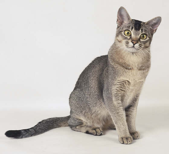 Хвост: средней длины и толщины с закругленным кончиком. По длине хвост должен доставать до плеч кошки, если протянуть его вдоль тела.