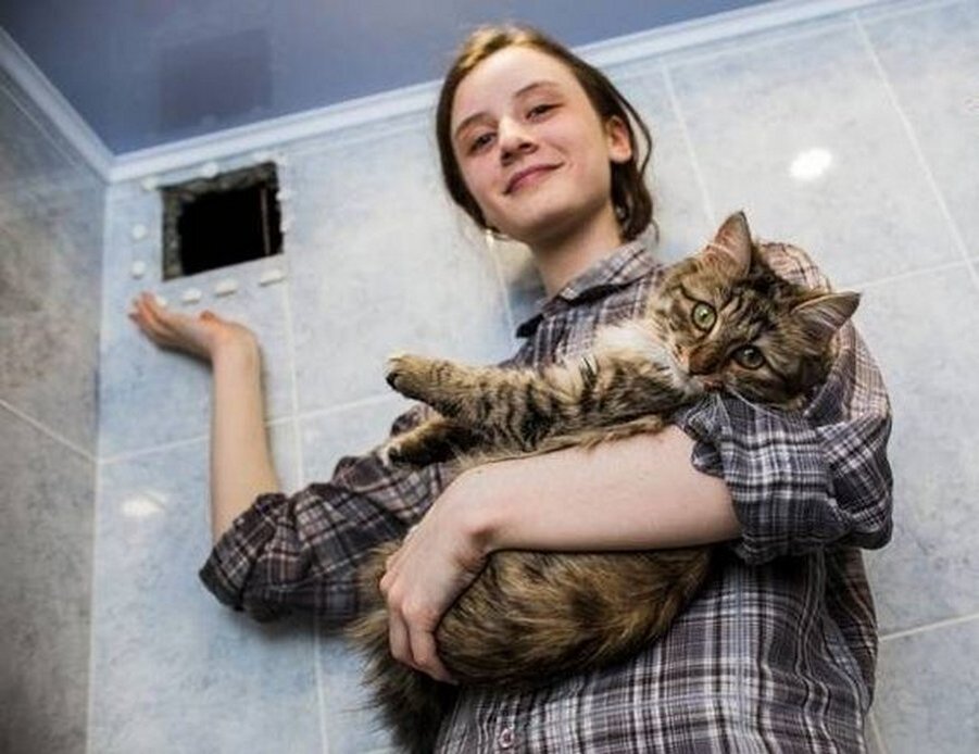 Но звуки повторялись снова и снова, причем становились всё тревожнее. Тогда Саша с помощью родителей сняла решетку в ванной — так и есть, звуки шли из вентиляционной шахты, с самого низа! Тогда Сашенька бросилась в ЖЭК. Мол, помогите, кошка сидит там уже очень долго! Работники пришли, посмотрели, пожали плечами. Плана шахты у них не было, поэтому — извините! Сделать ничего не можем… И ушли. Саша начала звонить куда только можно. Через два дня она добилась прихода других комунальщиков — на этот раз это оказались две девушки. «Вот они нам здорово помогли