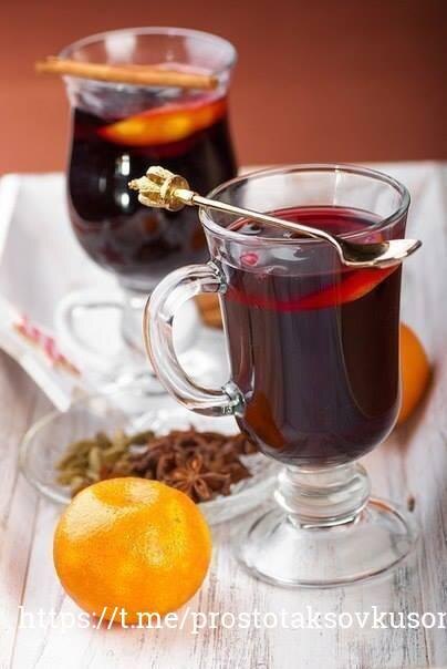 Глинтвейн. Вам потребуется: - 500мл.- сухого красного вина - 5шт.- гвоздики - 1 палочка корицы - 2-3 звездочки бадьяна - 4-5 шт. кардамона - 3-4 ст.л. меда - апельсин,лимон,яблоко - по желанию. - Опционально : вода - 100мл. - мускатный орех - пара щепоток. Как готовить: - Поставить толстостенный сотейник на маленький огонь и поместить все специи. Слегка прогреть. - Добавить вино, дольки лимона и апельсина (по желанию) и выключить, не доводя до кипения. - Добавить мед и пить очень горячим присыпав ,по желанию, корицей. Приятного аппетита! 👉 @prostotaksovkusom 🔥🔥🔥