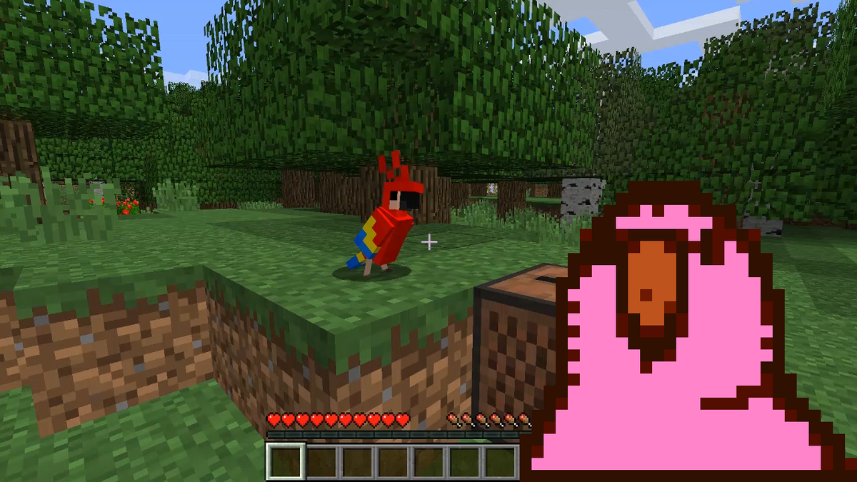 Попугаи в Майнкрафте умеют танцевать. Для этого им нужно включить проигрыватель. В процессе танца они меняют окраску. Окраска у них меняется и в воздухе. Правда, на плече у игрока они ведут себя прилично, очевидно в рамках соблюдения субординации. Интересно, только откуда взялась идея научить попугаев танцевать? Всё дело в том, что в slack чате Mojang активно используются смайлики с танцующими попугаями: О популярности таких смайликов рассказала в твиттере Обри Норрис, работающая в команде Pocket Edition в Microsoft: «Танцующие попугаи настолько популярны в чате Mojang, что, по правде говоря, это был лишь вопрос времени...» Что интересно, среди стандартных смайликов в «слаке» попугаев нет. Их надо устанавливать самостоятельно, а скачать (или полюбоваться ими) можно на сайте Cult of the Party Parrot. Вообще, эти смайлики, возникли не на пустом месте. Авторы вдохновились попугаем какапо Сирокко. Сирокко — это имя попугая. Дело в том, что вид попугаев какапо относится к вымирающим