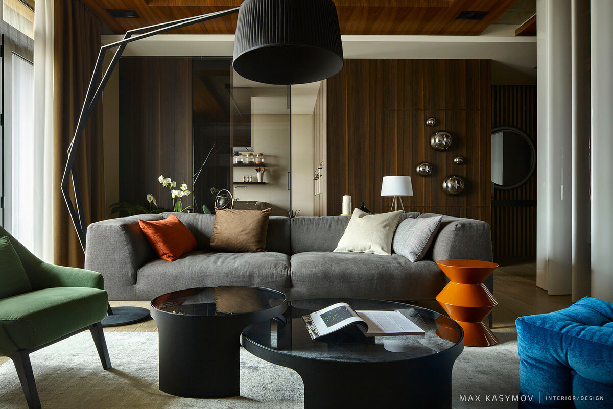 Студия Max Kasymov Interior/Design представила проект трёхкомнатной квартиры на Ленинском проспекте в Москве. Резиденция A Posteriori площадью 130 квадратных метров демонстрирует простые формы, где квадрат, круг, прямоугольник и их сочетания создают асимметричные, но вместе с этим уравновешенные композиции в интерьере. Цвет подчёркивает архитектуру пространства и каждого конкретного элемента меблировки. Белый, чёрный, бежевый и их оттенки определили основу цветовой палитры, а оранжевый, жёлтый, зелёный являются акцентами. Для придания динамики использован принцип отделки одной или двух стен в любом помещении в контрастном цвете или материале. В основе концепции дизайна – стилистика современного микса, которая определила состав отделочных материалов с выраженными фактурами камня, дерева, мрамора, бетона и стекла. При выборе и комплектации мебели использовали принцип, согласно которому линейность, лаконичность и простота общей формы предмета сочетается с округлостью отдельных его элемен