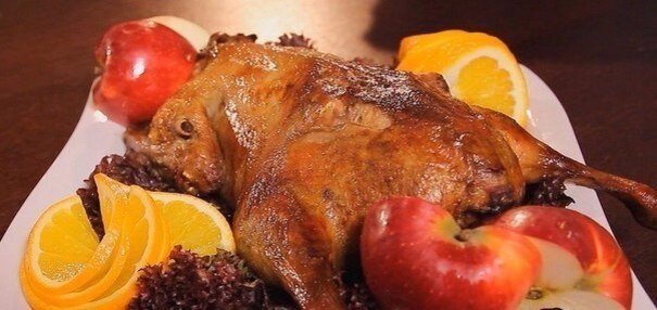 8. Утка с яблоками и черносливом, запеченная в рукаве