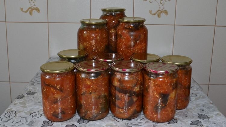 Баклажан - вкусный и полезный овощ. Хочу поделиться рецептом "Баклажаны в аджике". Очень распространенная закуска из баклажан на зиму у нас в Молдове. Закуска, которая станет незаменимой на вашем столе в любом случае, как на праздник, так и к повседневному обеду, как с мясом или рыбой, так и просто с картошечкой. ИНГРЕДИЕНТЫ баклажан - 5 кг помидоры - 3 кг сладкий перец или гогошары - 3 кг чеснок - 5-6 головок красный острый перец - 10-12 штук соль - 3 стол. ложки сахар - 1,5 стакана уксусу 9% - 150-180 мл СПОСОБ ПРИГОТОВЛЕНИЯ Подготовим все необходимые по рецепту овощи, из этого количества продуктов получается примерно 10 литровых банок нашей закуски. Баклажаны вбираем спелые и не очень крупные. Баклажаны нарезать таким образом и выдерживать в соленой воде, чтобы вышла вся горечь. Пока баклажаны вымокают, готовим аджику. Все овощи помыть.