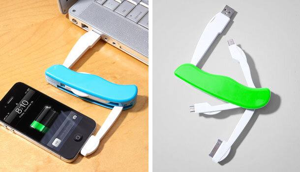 Неудобство проводных адаптеров для подзарядки или перекачки данных, было устранено с использование исключительного форм-фактора: в виде швейцарского ножа. Конечно в этой форме сохранен только принцип складного ножа. Так как вместо миниатюрных лезвий - инструментов, выходящих из пластмассового корпуса, в устройстве размещены раскладные электронные разъемы для зарядки ваших гаджетов. Получился зарядный кабель без кабельной части. USB Utility Charge Tool имеет четыре откидных разъема - USB, mini-USB, microUSB и 30-контактный разъем. Для подзарядки соедините USB с источником питания (например, с розеткой с USB-разъемом или USB-портом ноутбука) и подключите один из других разъемов к вашему гаджету, который нуждается в подзарядке, будь то ваш телефон или ваш iPod. Из-за отсутствия разъема Lightning пользователям iPhone 5 необходимо будет подключить адаптер.