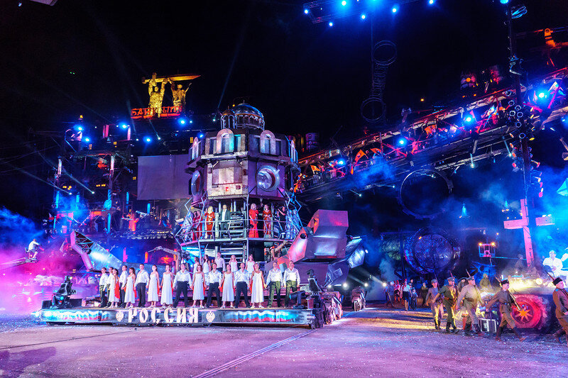 Из глубины сцены медленно появлялась главная декорация – огромная 50-тонная конструкция. Механизированное творение рук мотоциклистов символично изображало тот самый Русский Реактор – русский народ и его русский характер с «космической русской душой», который на протяжении более тысячи лет двигает Русь вперед. В какой-то момент вся площадка у горы Гасфорта превратилась в большой ревущий Реактор. На сцене происходило масштабное действо: маршировали дети – будущее России, пел хор Черноморского флота – символ защитников Отечества, появились Ночные Волки на своих брутальных мотоциклах. Русский Реактор набирал обороты, преображался и распускался будто цветок.