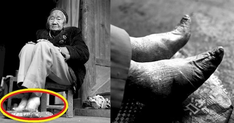 Более тысячи лет в Китае практиковался обычай бинтования ног. Легенда гласит, что император Ли Юй попросил одну из своих наложниц, Яо Нян, забинтовать ноги белым шелком и станцевать «танец лотоса» на кончиках пальцев. Танец произвел фурор, а женщины из высшего общества стали подражать Яо. Так и появилось понятие «лотосовые ножки». Фотограф Джо Фаррелл запечатлел последнее поколение китаянок, которые на себе испытали все прелести этой древней традиции. Бинтование ног начиналось до того, как стопа девочки была полностью сформирована. Стопа сгибалась с такой силой, что пальцы вдавливались в подошву ноги и ломались. Затем накладывалось множество бинтов и повязок. От размера ступни зависел престиж невесты, к тому же считалось, что принадлежащей к высокому обществу даме не следует ходить самостоятельно. Поэтому подобный обычай и таких «бессильных» жен могла позволить себе только знать. Идеальная ножка должна была составлять всего 10 см в длину. Сама процедура бинтования была невероятно мучи