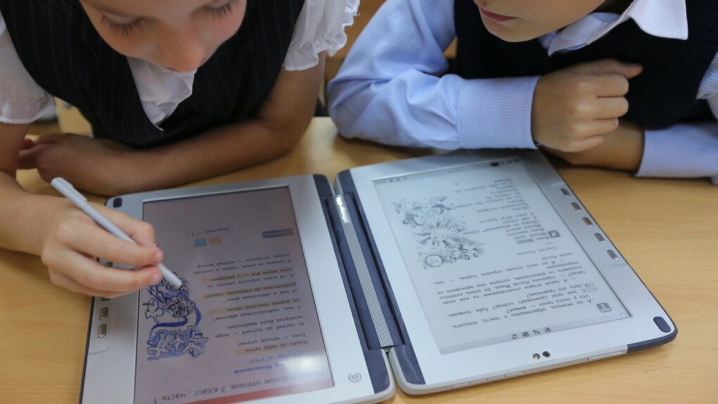 — Учебники мы получили 31 августа. Пока все распаковали, пока попробовали, пока зарядили. Сегодня первые ученики получили устройства — как видите, оно одно на парту. В дальнейшем будет у каждого ученика. У нас в параллели 128 третьеклассников — каждый получит гаджет.