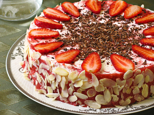 Шоколадный бисквит со сливочно-клубничным муссом Ингредиенты: Бисквит: