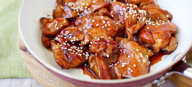 Курица терияки Ингредиенты: Куриное мясо - 1800 г (возьмите куриные бедра (не грудку!), снимите мясо с кожей и мелко нарежьте) Для маринада: