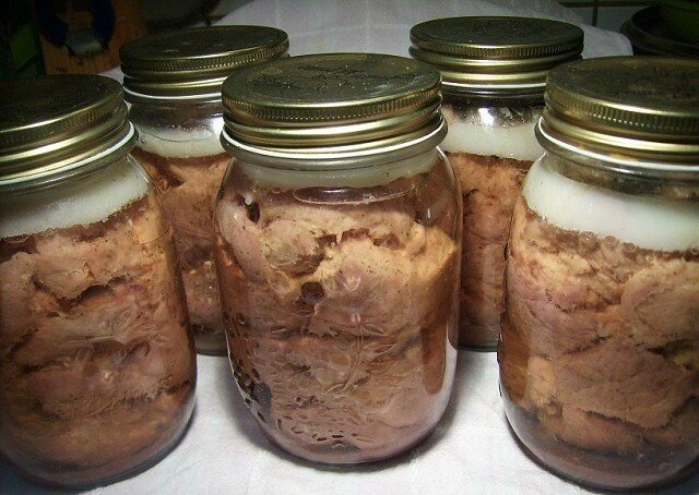 Гусь — птица важная. И не только запеченный. Но и тушенка из гуся очень отменная! А уж если она еще и приготовлена собственноручно… То это просто невыразимо вкусно! Описание приготовления: При слове «тушенка» многие сразу вспоминают заводские банки с непонятным содержимым. У вас именно так? Значит пришло время сделать тушенку самим. Я предлагаю вам сделать тушенку из гуся. Это только кажется, что все долго, непонятно и муторно. На самом деле, с помощью рецепта тушенки из гуся все не так сложно. Да, не быстро, но результат того стоит! И вы будете точно знать, что же именно лежит в банке. Ингредиенты: Тушка гуся — 1 Штука Лавровый лист — 3 Штуки Черный перец горошком — 6 Штук Соль — По вкусу Количество порций: 3-4 1) Тушку гуся вымыть, очистить от перьев. 2) С гуся снять кожу, нарезать порционно. Сложить в миску, посыпать солью, перцем. Оставить на час. 3) В банки (чистые и сухие) положить лавровый лист и перец горошком. Сверху плотно укладываем кусоч