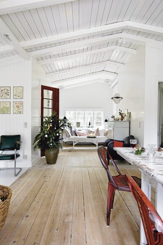 Порой, старые доски могут вообще сыграть ключевую роль в новом дизайне интерьера – просто нужно привести их в надлежащий вид методом циклевки и обработки краской или специальным лаком.