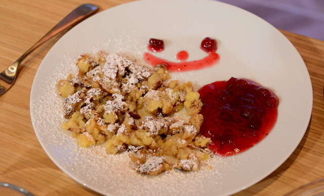 Ингредиенты: - 2 яйца - 2 столовые ложки сахарной пудры - 120 мл молока - 2/3 экстракта чайной ложки ванили - 4 столовые ложки пшеничной муки - 2 столовые ложки мелко измельченного миндаля (порошок) - сливочное масло Процесс: Отделите яичные желтки и белки. Вылейте молоко и ванильный экстракт в желтки. Туда же засыпаем пшеничную муку и молотый миндаль. Смешиваем все, чтобы комбинировать ингредиенты. Взбиваем белки. Когда они начинают густеть, мы добавляем сахарную пудру. Полученная белковая воздушная смесь добавляетсяк массе желтка. Аккуратно перемешайте, чтобы объединить два ингредиента, но так, чтобы белковая смесь сохранила пушистость. Нагреваем сковородку и смазываем ее 1,5 столовой ложки масла. Жарим на небольшом огне, пока омлет не достигнет золотого цвета, затем мы поворачиваем и также жарим с другой стороны. В конце процесса жарки вырежьте омлет на более мелкие кусочки, используя вилку или деревянный шпатель. Некоторое время мы жарим на кусочках (вы можете добавить дополните