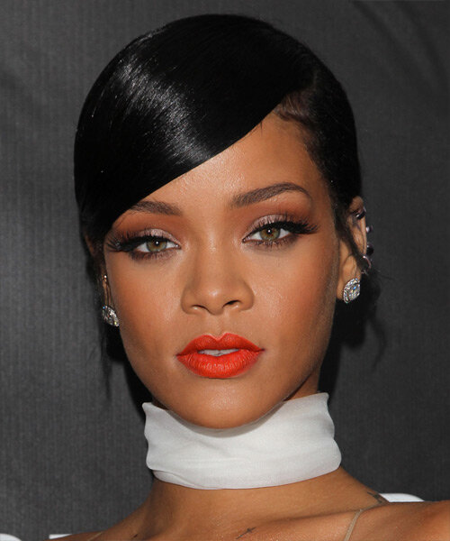 Эта глянцевая черная масса волос расчёсывается и приглаживается, подчёркивая лицо. Пышный хвост собирается сзади и завязывается снизу, завершая потрясающий образ. Этот великолепный стиль подойдёт для любого случая, в том числе как вечерний вариант, и также нуждается в средствах для придания блеска и фиксации.