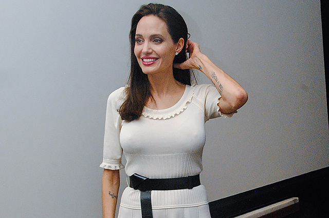 Анджелина Джоли презентовала свою картину «Сначала они убили моего отца: Воспоминания дочери Камбоджи» в Лос-Анджелесе. По этому случаю была организована пресс-конференция для Голливудской ассоциации иностранной прессы. На фотоколле Анджелина Джоли появилась в лаконичном платье светлого оттенка. Трикотажный наряд облегал фигуру знаменитости, а тонкую талию актрисы подчеркнул черный пояс. Отметим, что актриса отказалась от бюстгальтера, что было заметно сквозь тонкую ткань платья. Свой образ многодетная мама дополнила нюдовыми туфлями и лаконичными украшениями. А волосы Джоли оставила распущенными. Отметим, что руки, ноги и зона декольте актрисы выдают ее проблемы с весом. Напомним, совсем недавно Энджи буквально таяла на глазах, а ее вес достиг критической отметки в 45 килограммов. Но сейчас знаменитость выглядит намного лучше. Источник: http://glianec.com.ua/celebrities-style/33451-andzhelina-dzholi-pokorila-tochenoj-figuroj-v-smelom-plate