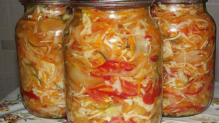 Берите по килограмму всех овощей: капуста, помидоры. перец, морковь, огурцы. Если чего нет, возьмите просто 2 килограмма любого овоща.