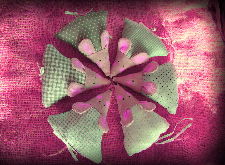 Сегодня мы расскажем вам, как сшить красивые и забавные мягкие игрушки своими руками. Будем мастерить семейство мышат. Эти зверьки точно понравятся вашим детям. А делаются они очень просто. Это, наверное, одни из самых несложных мягких игрушек, которые вы можете сделать самостоятельно. Если вы считаете, что совсем не умеете шить, то этот мастер-класс вас в этом переубедит. Впрочем, даже опытным мастерицам есть смысл обратить внимание на этих мышат. Уж очень милые – любой ребенок от них будет в восторге. Кстати, этих мышек можно использовать не только в качестве мягких игрушек. Зверушек вполне можно превратить в очень удобные игольницы или даже подушки (если сшить их большими). Что нам понадобится? - ткань для пошива тельца (примерно 30*20 см) - ткань для пошива мордочки (примерно 6*7 см) - ткань для пошива ушек (четыре детали 2*4 см) - тонкая атласная лента или шнурок для изготовления хвостика - фломастеры - вата или синтепон для набивки * все размеры ткани примерные, вы можете менять