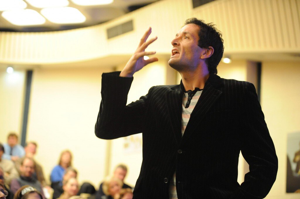 Эти простые приемы обманут ваш страх и позволят начать выступление "без сучка, без задоринки". Не только бизнес-тренерам знакомо волнение перед выходом на аудиторию. Любой, кто имел необходимость доносить свою идею до группы людей хорошо знает, что с организмом в этот момент начинают твориться странные вещи. Голос дрожит, ладони потеют, сердце норовит выскочить из груди, в глазах плывет, речь сбивается, мысли путаются и, если вовремя не взять это под контроль, от хорошо продуманного спича остается жалкая треть. Всем этим парадом командует адреналин, услужливо подготавливающий ваше тело к встрече с опасностью. Да-да, наши бессознательные механизмы оценивают выход на публику именно так – как весьма опасную затею. Не углубляясь в этот раз в психологическую подоплеку этого страха, давайте обратимся к методам его снижения, а значит, и к регулированию качества своего выступления. Что можно сделать до выступления, чтобы волноваться меньше? 1. Занять положение хозяина Придя заранее и перв