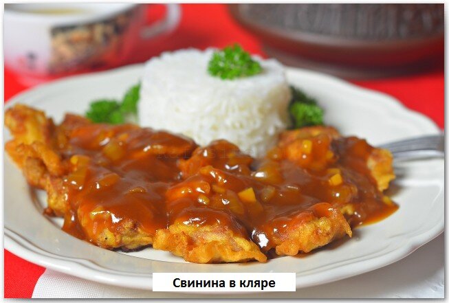 Свинина в кляре на сковороде в кисло сладком соусе понравится любому гурману. А благодаря кисло-сладкому соусу свинина в кляре приготовленная на сковороде станет еще вкуснее. Готовить такое блюдо хорошо на ужин сильно проголодавшись, ведь оно хорошо восполняет силы. Кляр будем готовить на пиве, я считаю это самым вкусным и хрустящим кляром. Что такое кляр? Кто будет готовить первый раз мясо в кляре, то сильно не заморачивайтесь с густотой теста. Оно должно быть жидким, ведь сам кляр и переводится с французского как жидкий, т.е. жидкое тесто. Положите всю свинину в тесто и доставайте её когда уже будете класть на раскаленную сковороду. Учтите свинина должна быть без лишней влаги, например сполоснули под красном и не обмакнули салфеткой. Кстати на восточной кухне аналог кляра называется темпура. Давайте готовить свинину в кляре на сковороде рецепт с фото прилагается. Ингредиенты: 1 кг - филе свинины, для кляра: 1 - яйцо, 1/2 - чашки пива, 3/4 - стакана муки, соль, перец, масло для жа