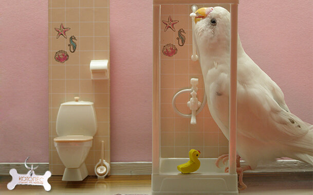 Приучать к воде следует постепенно. С помощью пульверизатора легко побрызгайте над птицей, следите за ее реакцией. Вода в пульверизаторе должна быть горячей. Поощрите интерес питомца лакомством или похвалой.