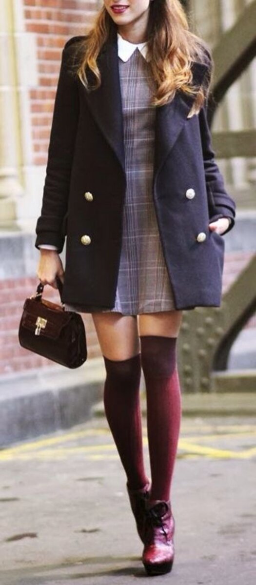 Высокие гольфы можно носить вместе с коротенькими платьями. При этом открывается возможность носить легкие короткие летние платья уже осенью или же весной, поскольку длинные гольфы не только придадут женщине больше сексуальности и привлекательности, но и согреют ножки, если на улице будет прохладно.