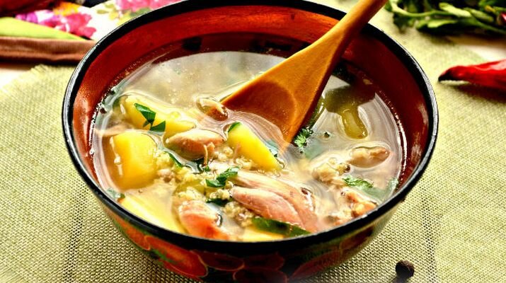 Очень простой и в то же время очень вкусный супчик. Минимум ингредиентов, а вкуснотища не описать… Подготавливаем в указанном количестве ингредиенты, которые нужны для приготовления крестьянского супа. Варить суп будем в кастрюле объемом 2,5-3 л. Половинку курицы разрезаем на части. Переправляем их в кастрюлю. Заливаем водой, варим около 30-40 минут. Отварные куриные части из кастрюли извлекаем, а получившийся бульон процеживаем. Промываем под проточной водой картофельные клубни. Очищаем их, а затем нарезаем в форме брусочков. Измельченный картофель перекладываем в куриный бульон. Очень тщательно промываем пшено. Крупу предварительно перебираем, извлекаем черные зернышки, если таковые имеются. Промытое пшено отправляем в кастрюлю к картофелю. Ингредиенты доводим до кипения, прикрываем кастрюлю крышкой. Варим суп примерно 15 минут. В конце готовки приправляем крестьянский суп солью по вкусу. Остуженное куриное мясо отделяем от костей. Перекладываем мясной ингредиен