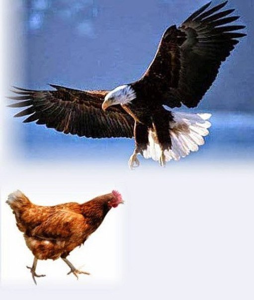 Однажды из гнезда орла на склоне высокой горы скатилось в долину одно яйцо. Его подобрал фермер и подложил в сарай своей курице-несушке, высиживающей яйца. Вскоре появились цыплята, и одновременно с ними из яйца вылупился птенец орла. Он рос вместе с цыплятами, и через какое-то время научился делать все, что и они - кудахтать, копаться в земле, он даже бил крыльями и пытался взлететь на несколько сантиметров. Орел считал, что он был ни кем иным, как курицей. Он любил свой дом, свою семью. Но дух его не был спокоен, каждый раз, видя парящих в синем небе могущественных орлов, он мечтал взлететь вместе с ними. Куры смеялись над ним, говоря, что он не может летать как птица, он же курица. И орел научился им верить и перестал мечтать о небе. Так орел жил и умер курицей. Мы становимся тем, как мы считаем, кто мы есть. Если вы мечтаете стать орлом, слушайте свои мечты, а не слова куриц.