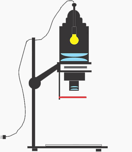Свет от лампы, проходя через негатив, наводится на резкость объективом и попадает на фотобумагу. Самым простым объективом в данном случае может быть точечная дырка (камера-обскура). Такой увеличитель будет работать, хотя и не будет выдавать кадры высокого качества.