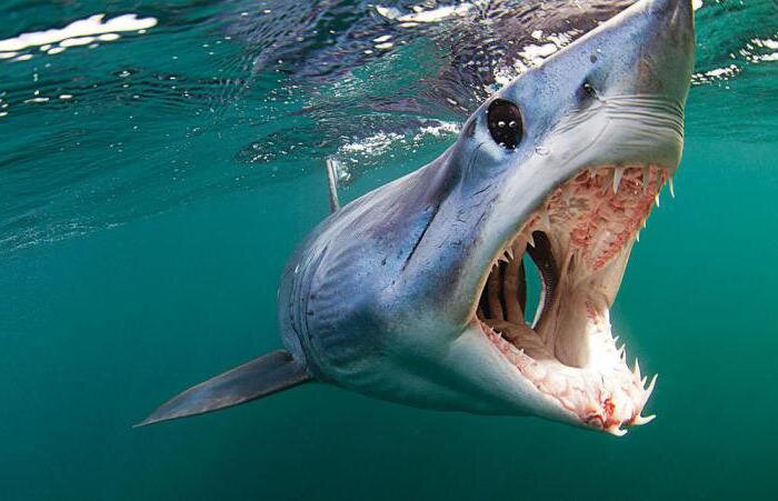 Четырёхметровая акула-мако (Isurus oxyrinchus) считается одной из самых агрессивных и опасных для человека акул. Эта рыба - гремучее сочетание размера, силы и скорости. Акула-мако широко распространена по трём тёплым океанам и может встретиться практически повсеместно. Держаться эти акулы обычно в глубокой воде, на расстоянии мили от берега. Изящные серо-голубые акулы-мако могут встречаться на глубине до 500 метров. Они предпочитают обитать в тёплых водах, где температура воды колеблется от 17 до 22 градусов. В водах прохладнее 17 градусов они появляются крайне редко. Так акул практически никогда не видели канадские рыбаки. В отличие от многих других акул, зубы этой хищницы длинные тонкие и загнутые назад. Они прекрасно видимы даже при закрытой пасти. Питается акула преимущественно кальмаром и костной рыбой, вроде тунца, рыбы меч, макрели. Также в меню к мако могут попасть черепахи, другие акулы и морские свиньи.