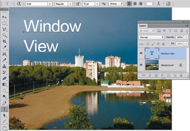 Текст сопровождает дизайнерское решение, обладая смысловой нагрузкой. Вы можете создавать фрагменты текста, использовать текст вдоль кривой, применять к текстовому слою эффекты и искажения. В этом уроке мы рассмотрим основные текстовые параметры и способы редактирования. Особенности текстового слоя Для текста не требуется создавать слой заранее. Ввод текста осуществляетсяинструментом Type (Текст) . Щелчок по документу инструментом Type (Текст) создает текстовый слой.