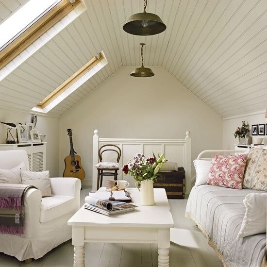 Гостиная под крышей, или как обустроить комнату для приема гостей в мансарде