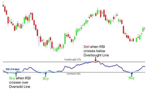 Индикатор относительной силы или RSI (relative strength index). Этот технический индикатор основан на учете и предвычислении скорости нарастания функции цены опциона. График изменения цены, который видит трейдер на мониторе - это не какая - то хаотично нарисованная ценой линия, а циклическая функция, поддающаяся математическому анализу. Таким образом, RSI дает самое главное для трейдера - время или момент окончания работы текущего ценового тренда.
