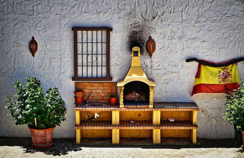 Если предполагается разместить печь барбекю из кирпича на веранде, пусть её место будет не в углу, а там, где она будет разделять кухню от обеденной зоны. Пусть она будет разделяющей веранду стеной.