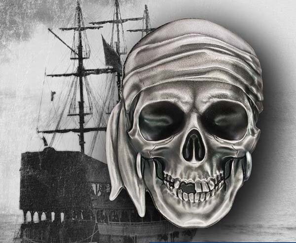 Американская компания Coin Invest Trust, выпускающая нумизматические сувениры, в ноябре 2017 года выпустит коллекционную монету в виде пиратского черепа. Монета уже получила название «Большой череп» и будет изготовлен из 500 грамм чистого серебра! Это будет одна из пяти монет в пиратской серии, в которую также войдут еще две серебряных и две золотых монеты. Удивительная схожесть монеты с настоящим черепом и реалистичный трехмерный рельеф достигается благодаря уникальной технологии SMARTMINTING, которую используют специалисты CIT. Монета будет реализовываться в оригинальном футляре, развивающем пиратскую тему. Методы капитанов Флинта и Джона Сильвера, по отъему денег давно ушли в прошлое, сейчас все делается красиво и эпатажно, с обязательным приданием этой деятельности элементов законности. Чтобы красивая пиратская символика раскупалась быстрее и дороже, золотые и серебряные слитки покрывают налетом официальности, назвав их монетами. На самом деле они, конечно же таковыми не
