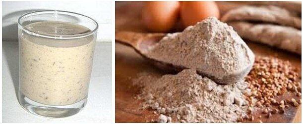Итак, берем кефир или простоквашу в количестве одного стакана и смешиваем со столовой ложкой гречневой муки. Ее можно получить, перемолов в кофемолке. Предварительно хорошо просушите ее в духовочке.