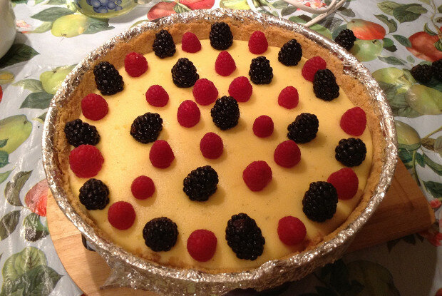 10. Сливочное масло - 100 г Инструкция приготовления 1. Размолоть все печенье очень мелко (в блендере, руками, до песочной крошки), подробно размешать со сливочным маслом до возможности создавать из массы форму. 2. Взять круглую (желательно разъемную) форму для выпечки (около 30 см), смазать сливочным маслом, застелить дно и стенки формы фольгой (сделать все плотно и аккуратно, выпекаться будет на водяной бане). Высыпать смешанное печенье с маслом в форму и сделать корж со стенками (можно воспользоваться плоским дном стакана, несильно надавливая, перемещая стакан вдоль формы без резких движений). Убрать в холодильник полученную форму. 3. Положить в миску для смешивания маскарпоне, затем филаделфию и сметану, смешивать миксером на самом